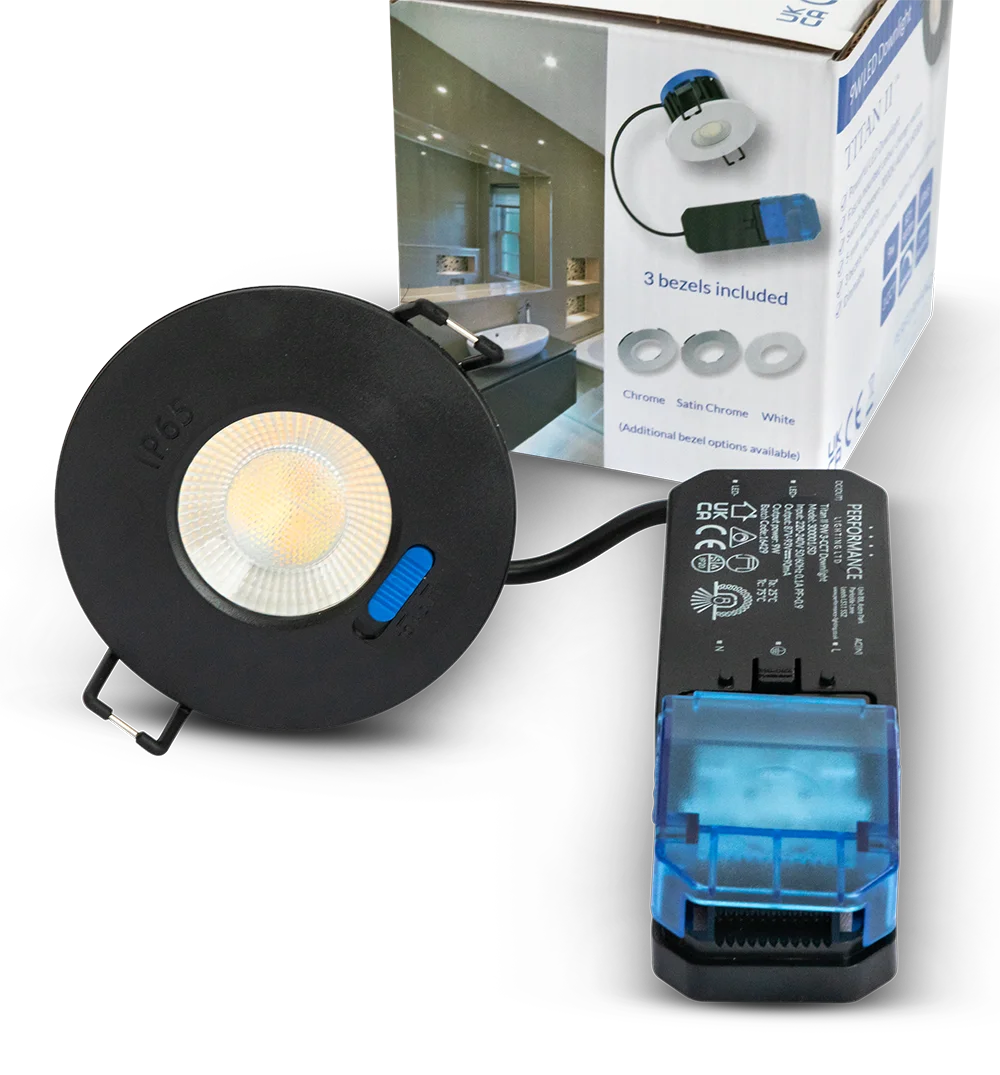 Titan II is our powerful 9w downlight, with easy fascia mounted colour changing switch, to change the light colour from 3000K warm white, 4000K cool white and 6000K daylight white.
